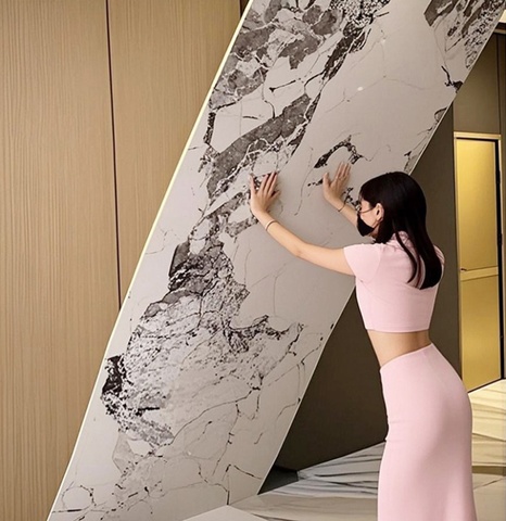 Le motif 3D de feuille de marbre peut être personnalisé pour la décoration intérieure Panneau mural en PVC avec revêtement UV